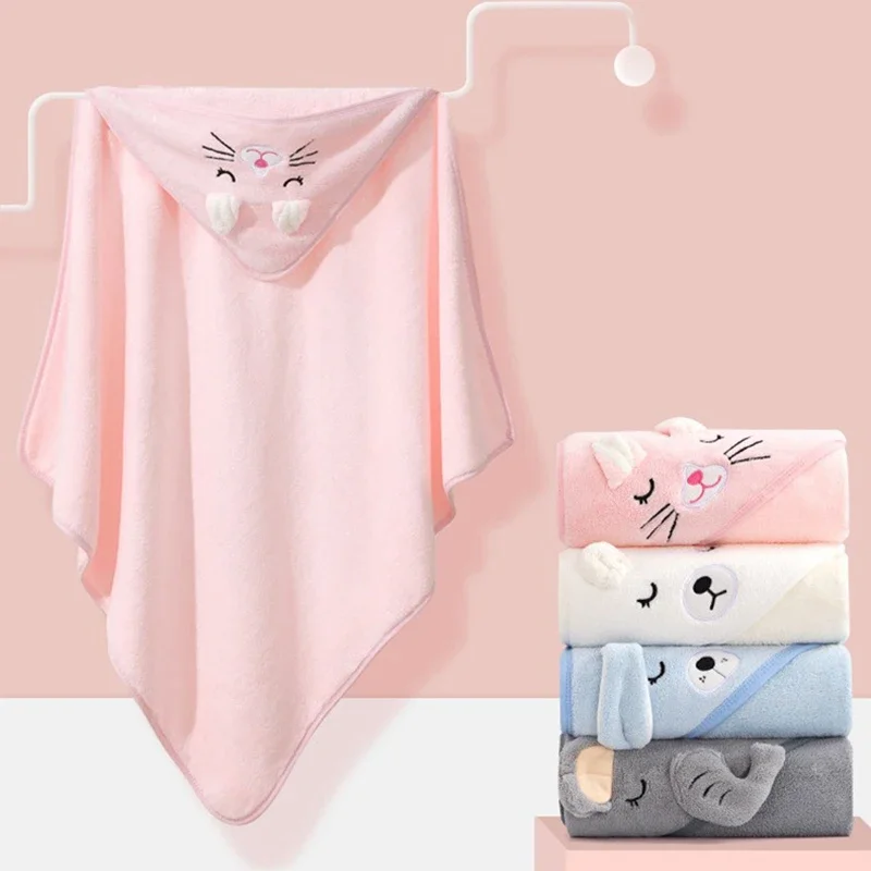Cartoon Animal Kids Hooded Bath Towel Coral Velvet Water Absorbent Baby Bathing Cape Wrap Cover Comfortable Blanket for Children