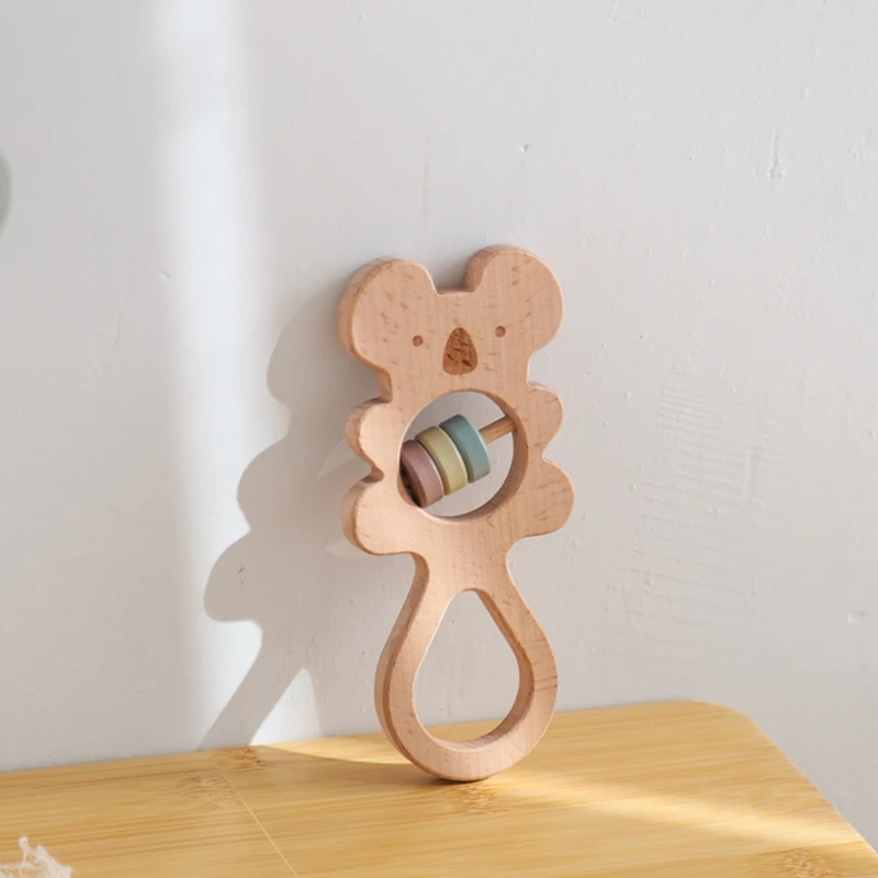 Baby toys 0 12 Months Wooden Rattle Sensory Toys for Baby Montessori Baby stroller Cartoon Koala Hand Bell Infant Wooden Teether
